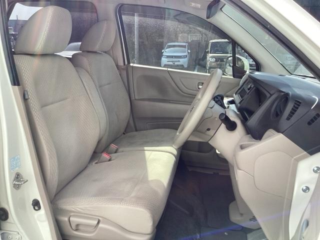 フロントシートはベンチシートです。ベンチシ―トは運転席と助手席の移動もスムーズ!狭い駐車場での乗り降りに便利です。シートの間にコンソールボックスやドリンクホルダーがないため、車内空間も広く感じます