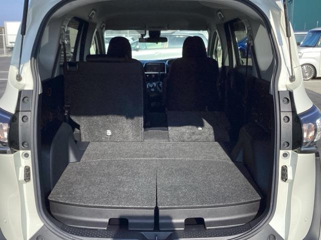 広々リアシートです。フラットな床と膝回りや頭上スペースなど十分な広さがあります。