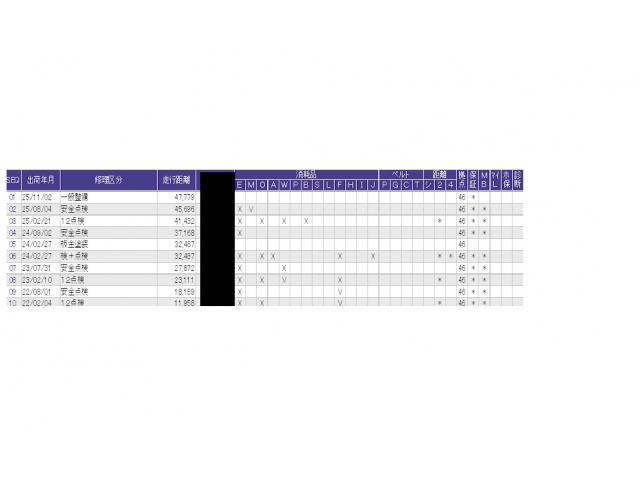 こちらの車両の整備歴になります。詳しくはスタッフにお尋ねください