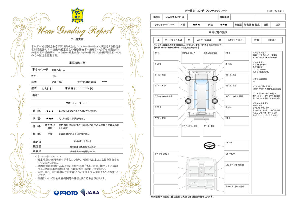 | 車台番号下3桁 | 420 | 全体のサイズ | - / - / - |