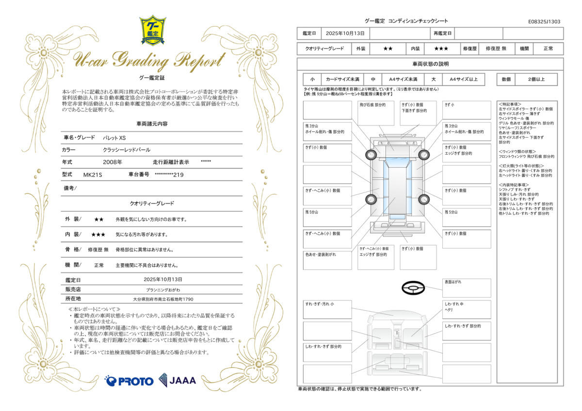 | 記録簿 | ー | 輸入認定中古車 | ー |