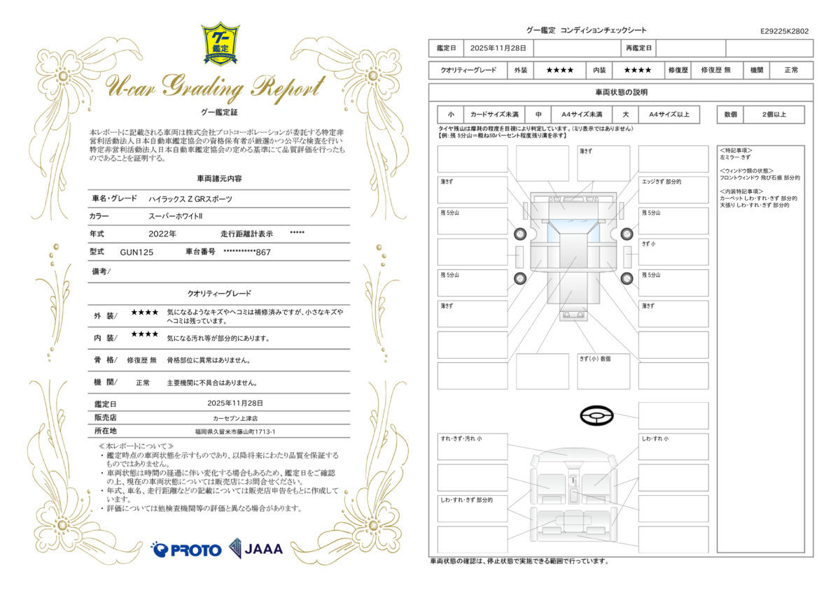 | 走行距離 | 3.4万km | 修復歴 | なし |