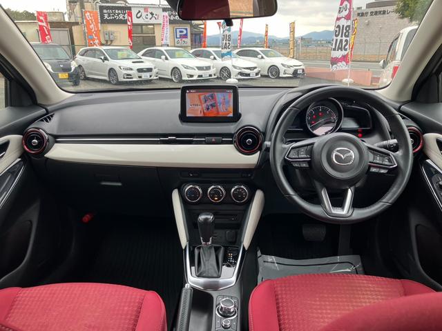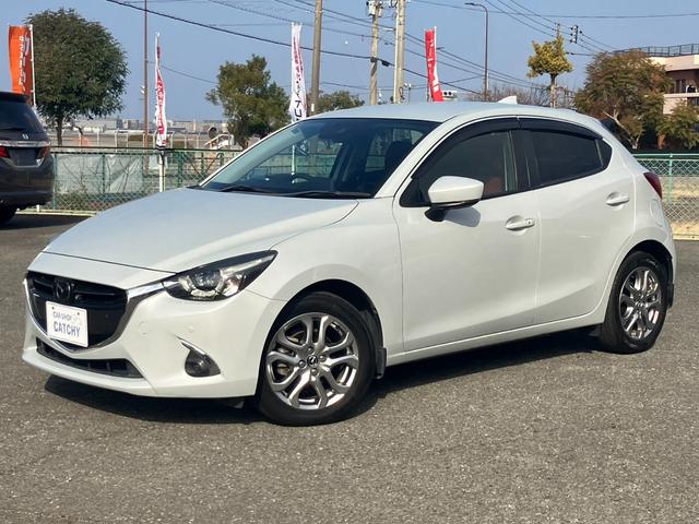 マツダ デミオXDノーブルクリムゾン ナビ フルセグ 360℃カメラ レーダークルーズ Bトゥース LEDライト LEDフォグ ETC スマートキー シートヒーター ブラインドスポットモニター 車線逸脱警報 パーキングセンサー 誤発進抑制