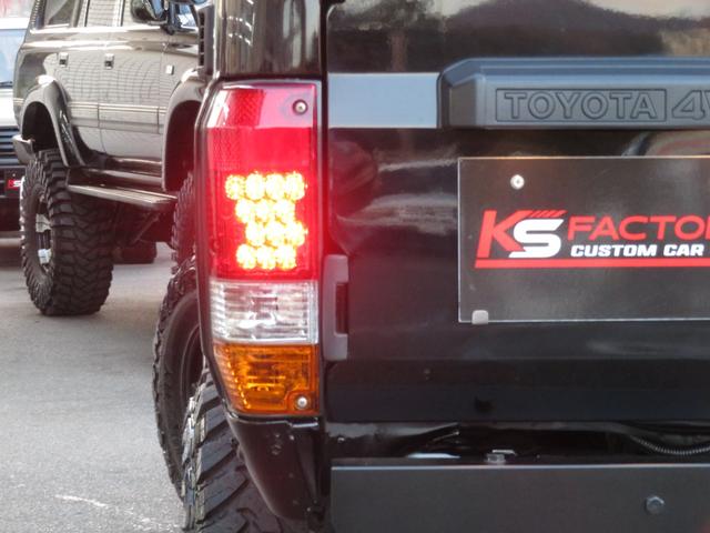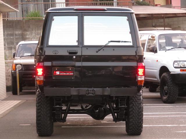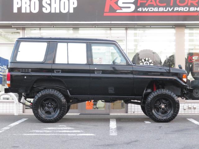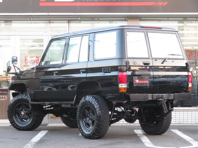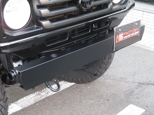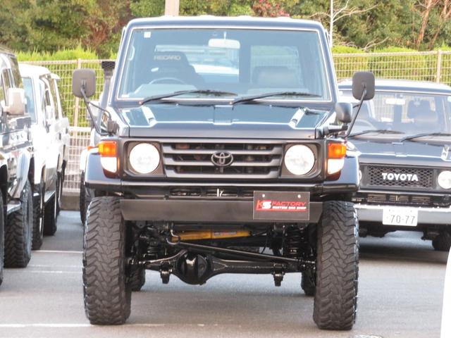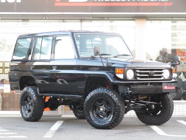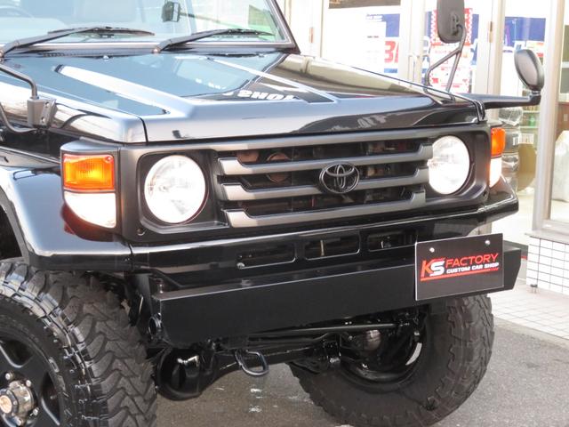 トヨタ ランドクルーザー70LX 後期Fコイルモデル 新品全塗装黒 4インチUP公認済み ブラッドレーV16インチAW TOYO製オープンカントリーMTタイヤ 前後クロカンバンパー クリフォードセキュリティ 社外デッキ ETC PW