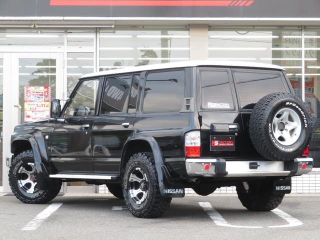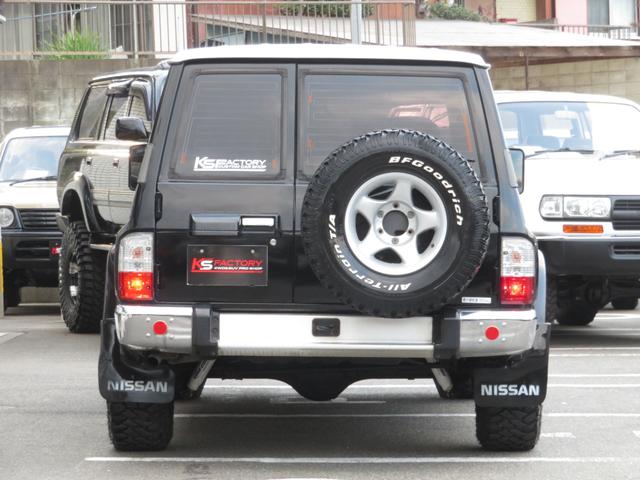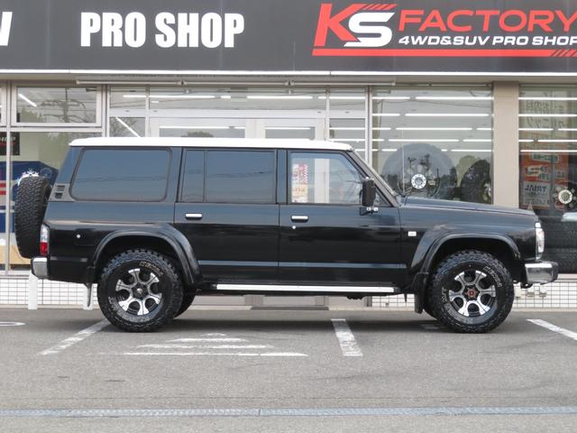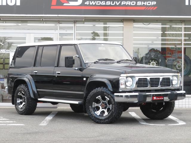 日産 サファリグランロード 全塗装済黒II ロールーフ 純正5速マニュアル 純正車高 社外ショックアブソーバー ディックシーペック16インチAW KENDA製MTタイヤ 専用シート スタビOFF デフロック ETC キーレス