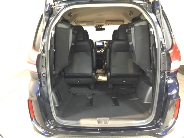 トランクの広さは、どうです、たくさんの荷物が積めますよ。3列目シートは跳ね上げ式で収納が可能です。荷室が広くなり大きな荷物も積みやすくなります。買い物やアウトドアなど荷物が多い場面で便利です。