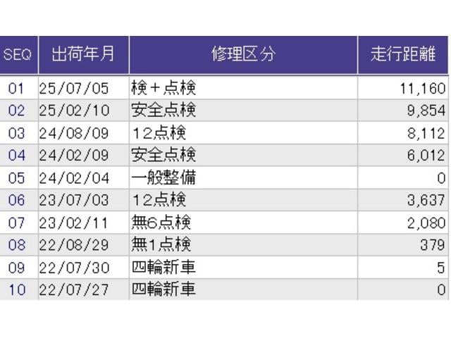 こちらの車両の整備歴になります。詳しくはスタッフにお尋ねください。