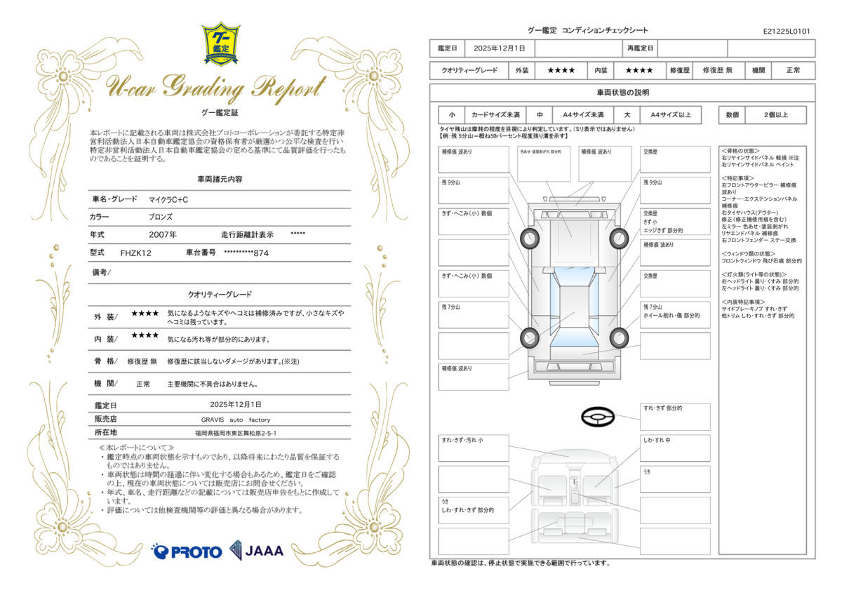 | 走行距離 | 1.5万km | 修復歴 | なし |