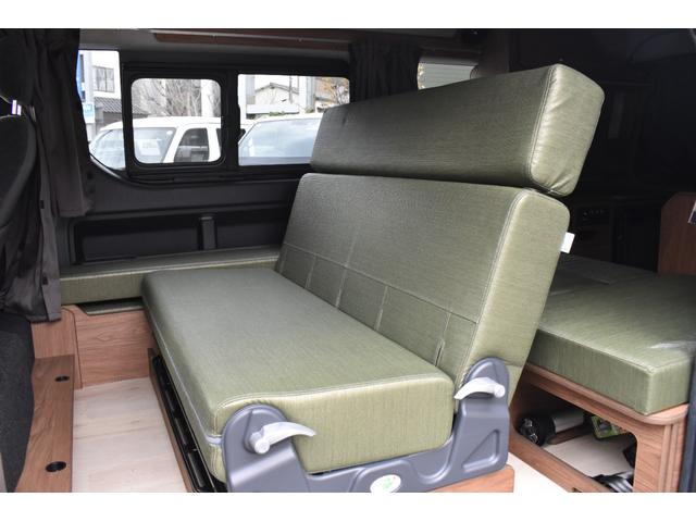 シートや家具は優しい色味の物をチョイスいただいていますので飽きの来ない一台ではないでしょうか!セカンドシートは対面スタイルへ変更することも可能です!