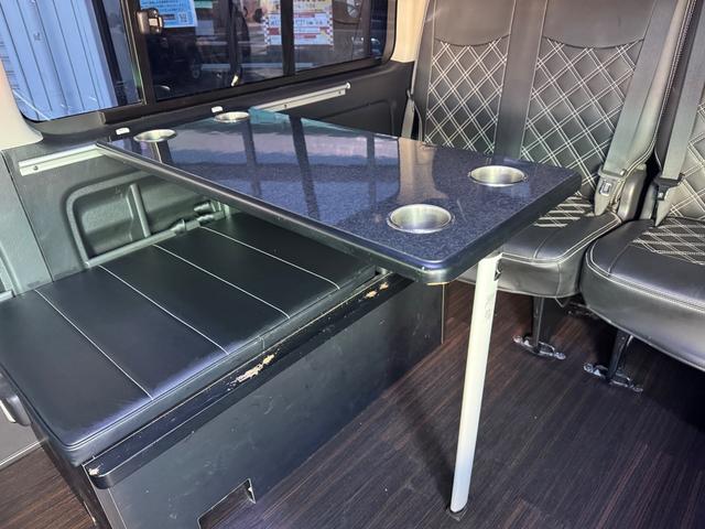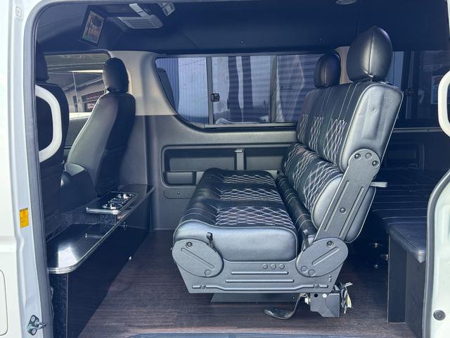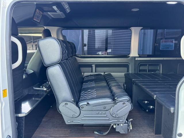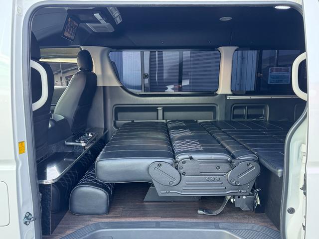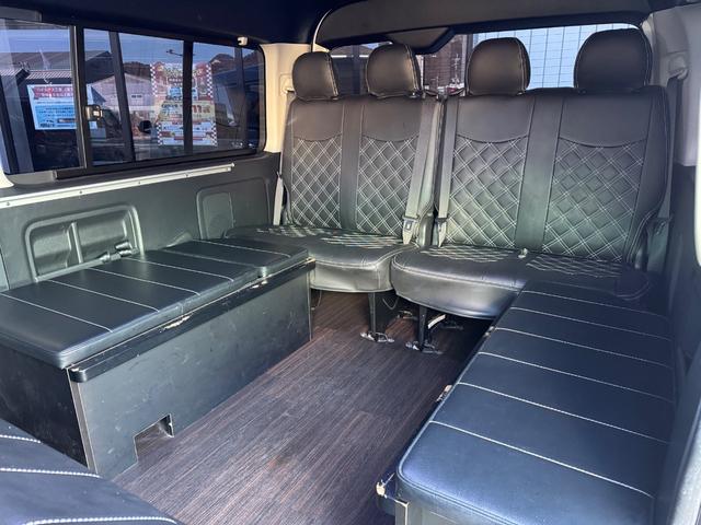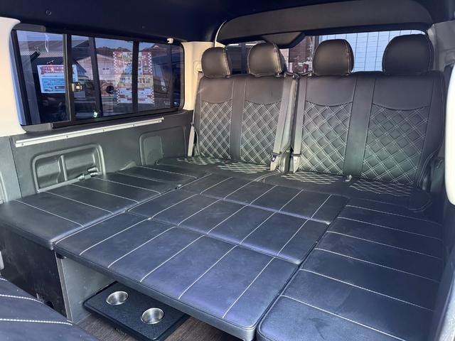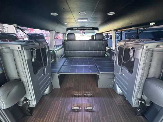 GL 10人乗り/フルフラットベッド/パワースライドドア/フルエアロ/天井レザー張り/社外ボンネット/ローダウン/社外ショックアブソーバー/ハーツ18AW/中古カスタム/リアスポイラー/フローリング施工