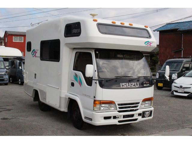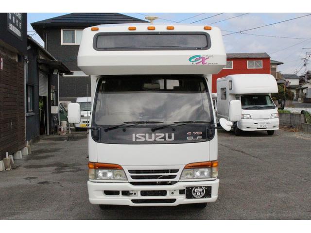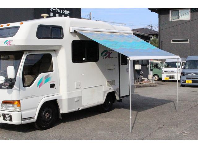 いすゞ エルフトラックヨコハマモーターセールス オックス 4WD シンク FFヒーター 1500Wインバーター 3WAY冷蔵庫 トイレ シャワー 温水ボイラー TV 電子レンジ サブバッテリー 走行充電 外部充電 ルーフベント オーニング 走行用リアクーラー