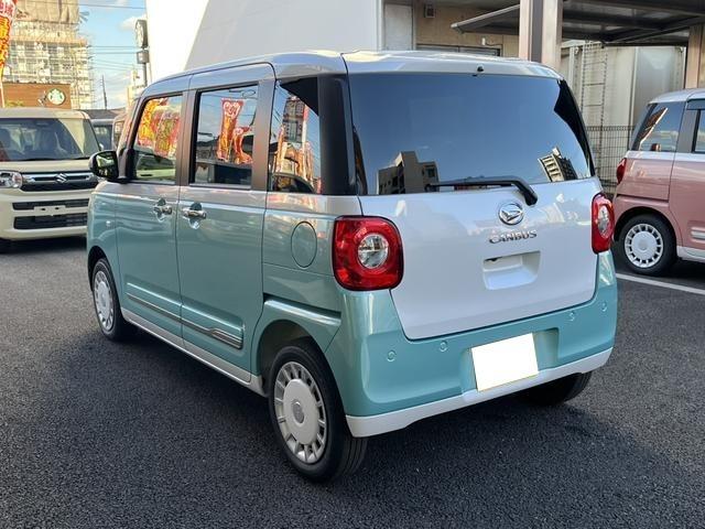ダイハツ ムーヴキャンバスストライプスG バックカメラ 両側電動スライドドア クリアランスソナー 衝突被害軽減システム オートライト LEDヘッドランプ スマートキー アイドリングストップ 電動格納ミラー シートヒーター ベンチシート CVT