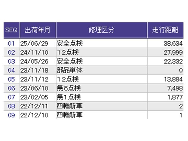 こちらの車両の整備歴になります。詳しくはスタッフにお尋ねください
