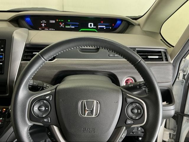 ステアリング右手側に安全運転支援機能のホンダセンシングをコントロールするスイッチ、左手側にオーディオ関連のコントロールスイッチを配置、視線を逸らすことなく運転に集中できます