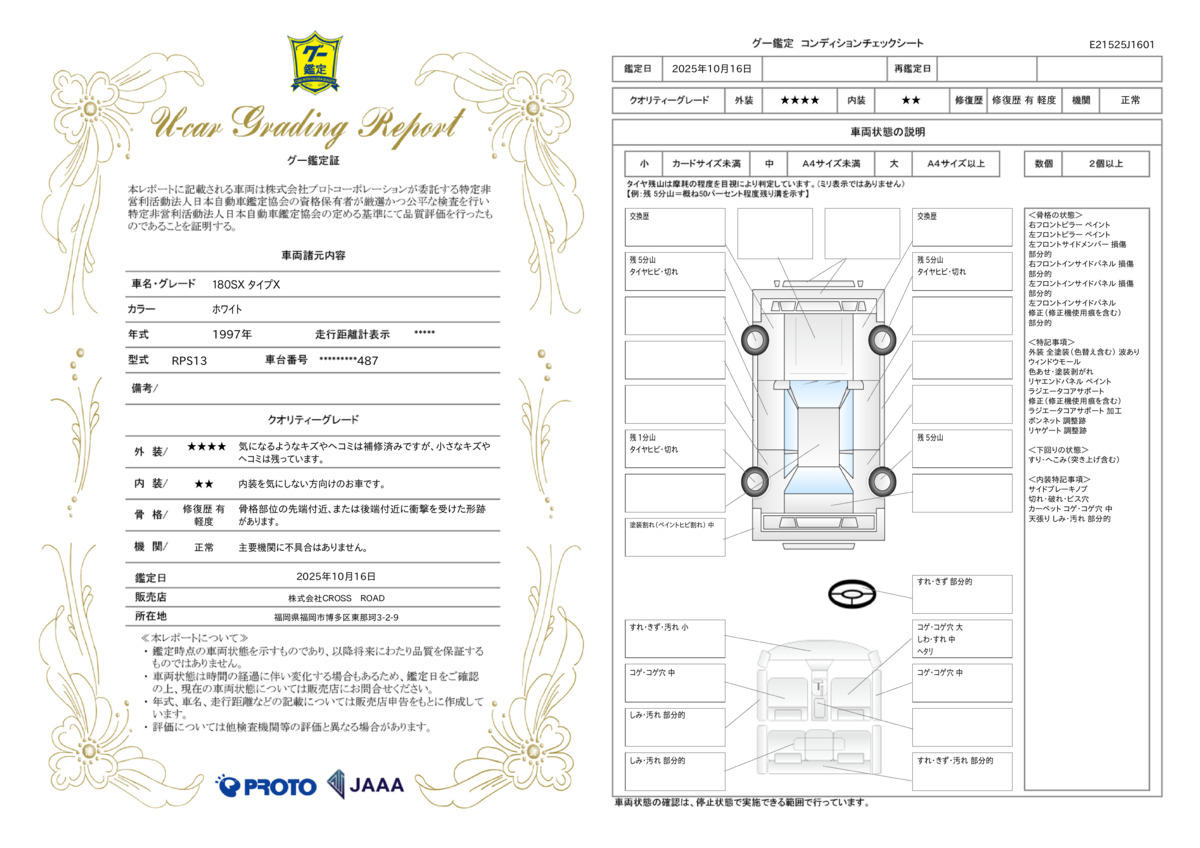 走行距離 | 16.0万km | 修復歴 | あり |
