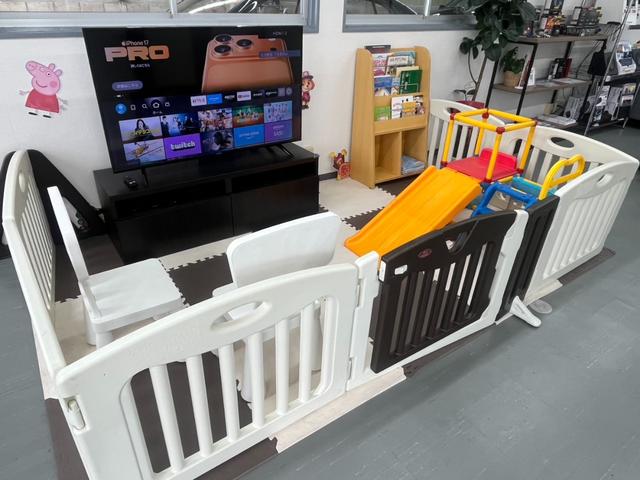 商談スペースです。キッズスペースもございますので、お子様連れのお客様もお気軽にご来店ください。