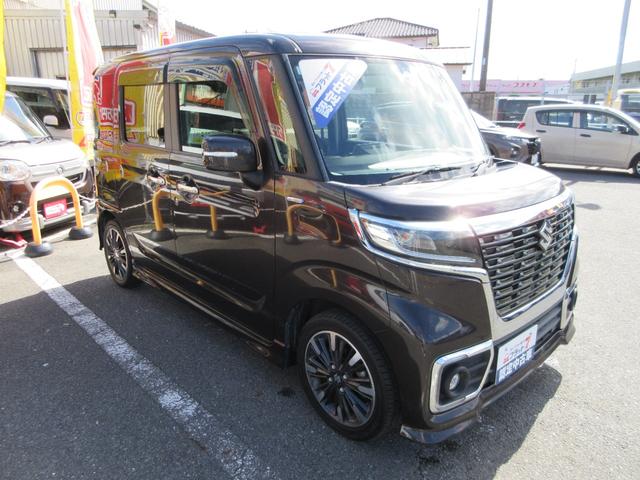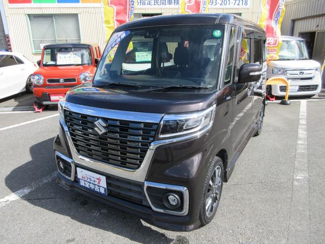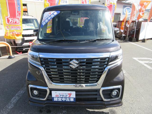 スズキ スペーシアカスタムハイブリッドXS フラット7認定中古車 衝突軽減ブレーキ ワンオーナ禁煙車 8インチフルセグナビ バックカメラ GPSレーダー 左右電動スライドドア レーンキープアシスト アクセル踏み間違い防止装置 横滑り防止装置