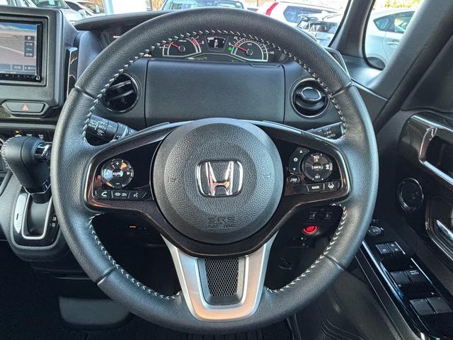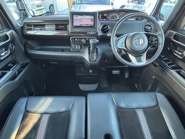 ホンダ N-BOXカスタムG・Lターボホンダセンシング 禁煙車 両側パワースライドドア 社外SDナビ Bluetooth バックカメラ レーダークルーズ ハーフレザーシート LEDヘッドライト ETC 純正15AW 本革巻きステアリング