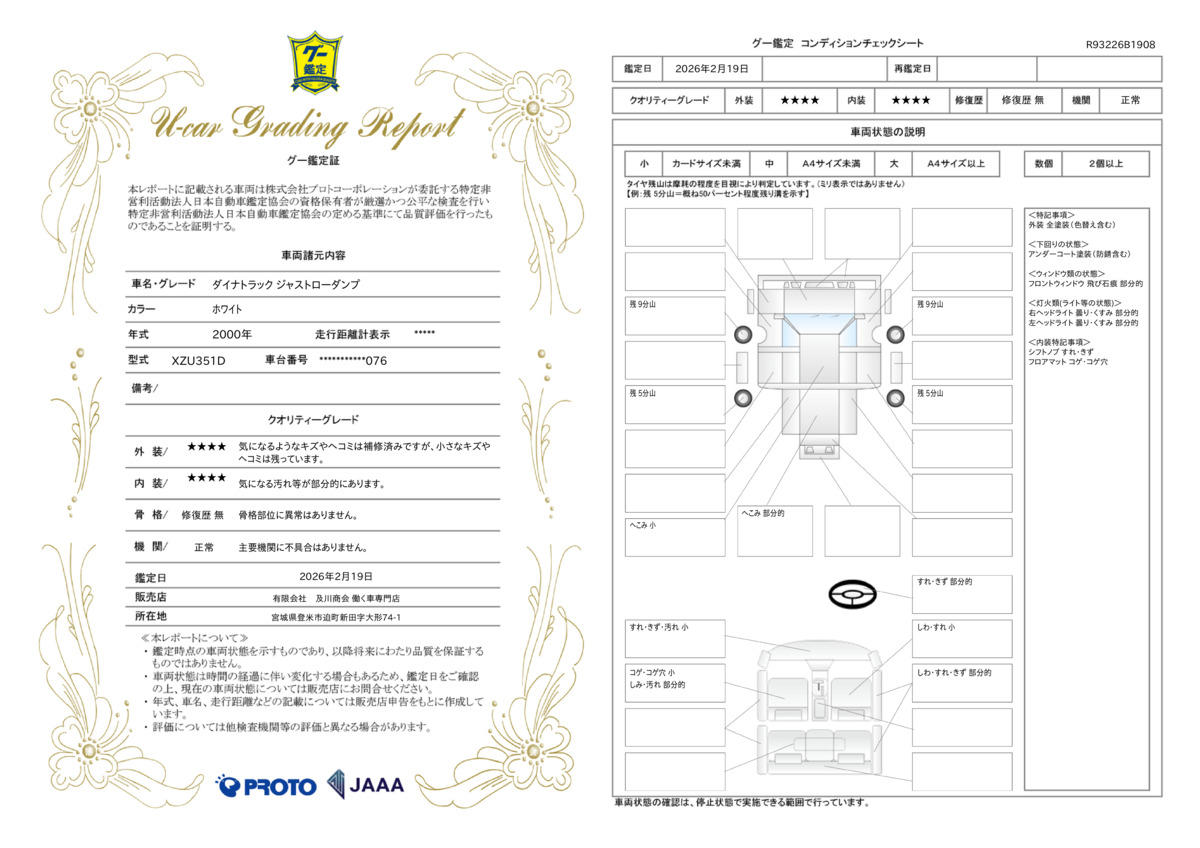 | 走行距離 | 8.4万km | 修復歴 | なし |