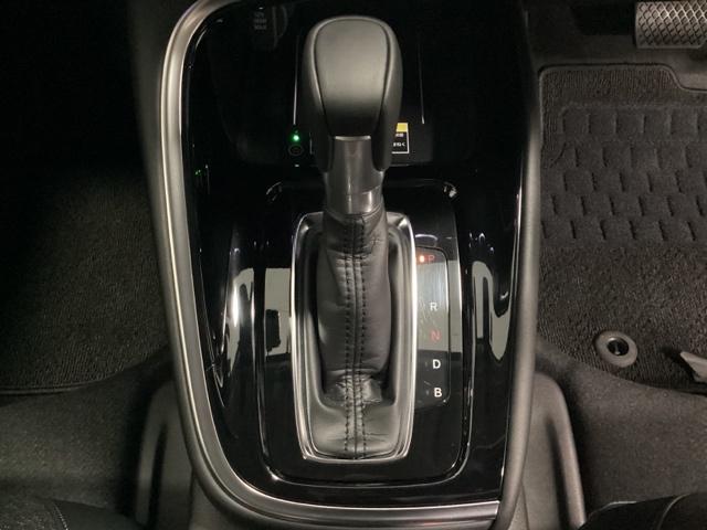 CVT車のセレクトレバーです。低速から高速まで、変速ショックのないスムーズな走りと、エンジン効率のよい領域を維持して燃費にも貢献します。サイドブレーキはスイッチ操作の電子制御パーキングブレーキです。