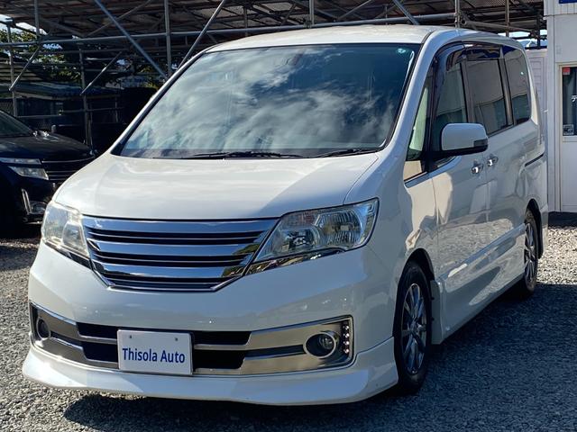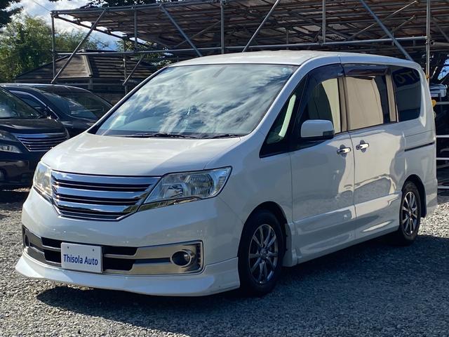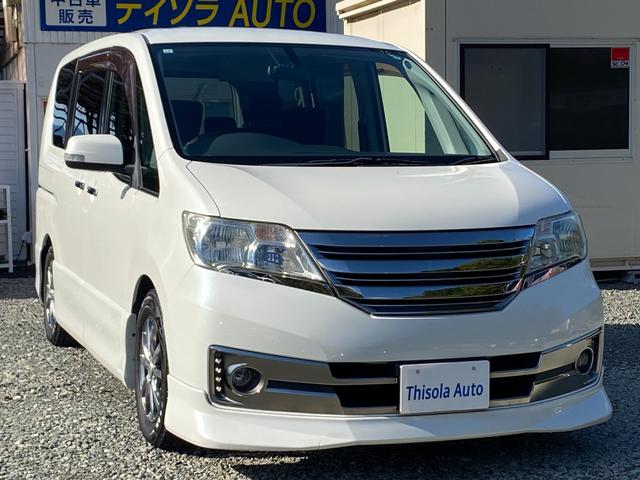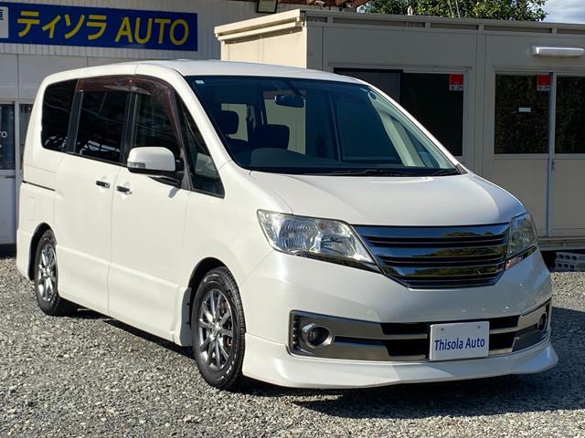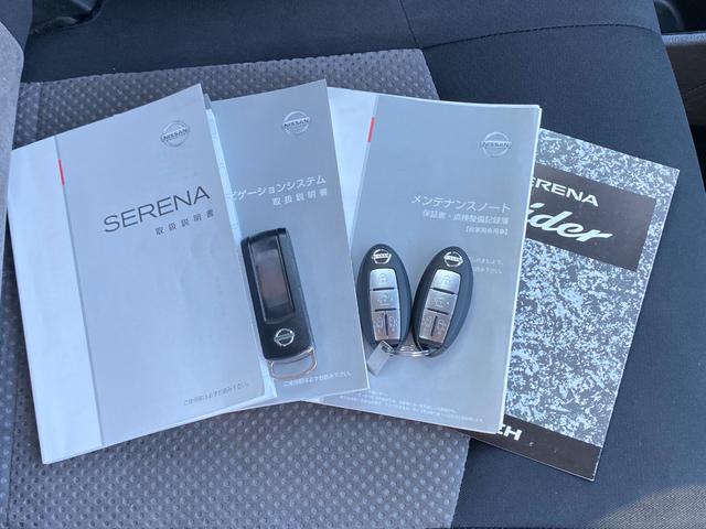日産 セレナライダー ブラックライン ガラスパノラマルーフ 専用エアロ ナビ TV バックカメラ 後席用フリップダウンモニター 両側電動スライドドア ドライブレコーダー エンジンスターター アイドリングストップ タイミングチェーンエンジン