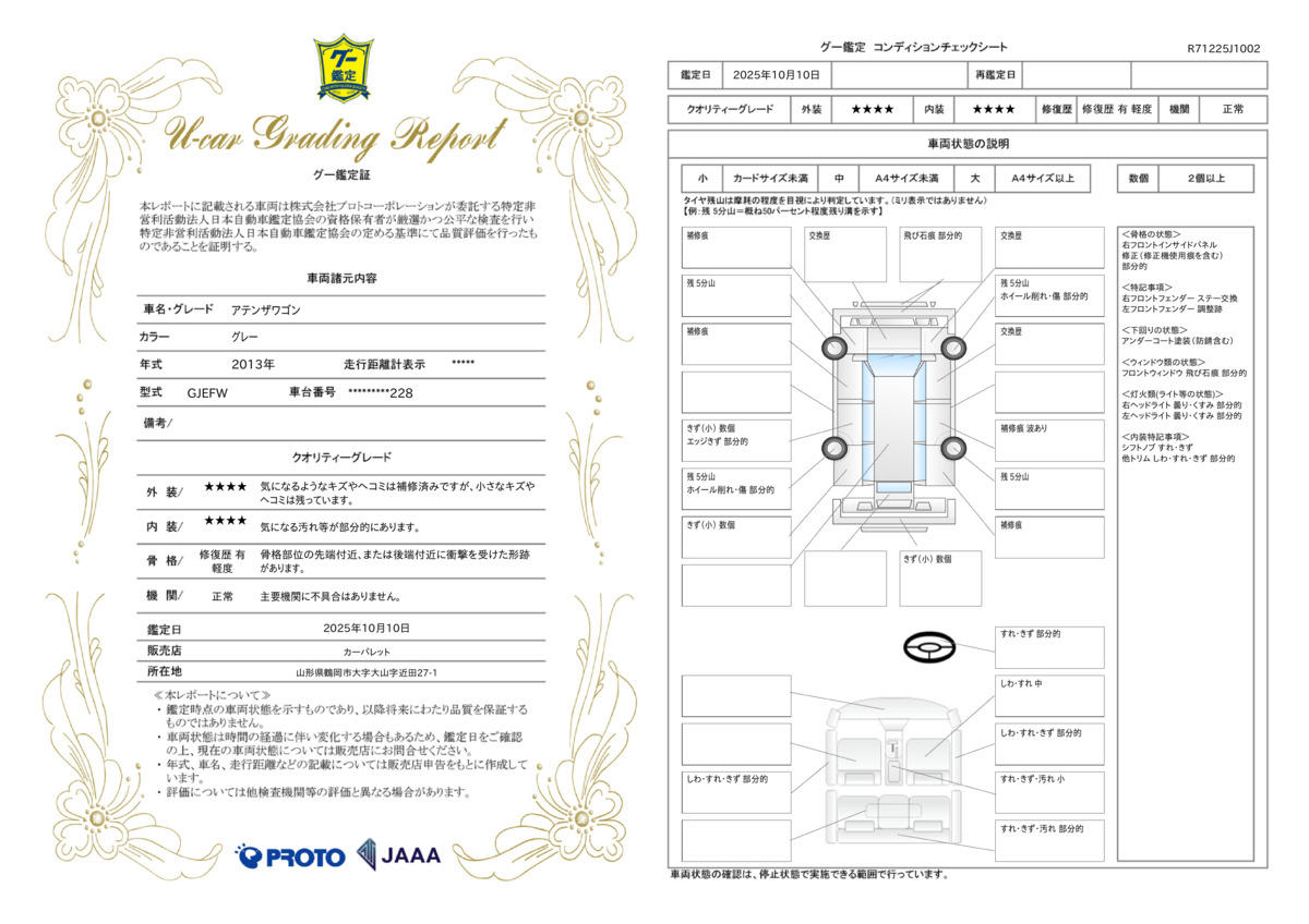 | 走行距離 | 7.4万km | 修復歴 | あり |
