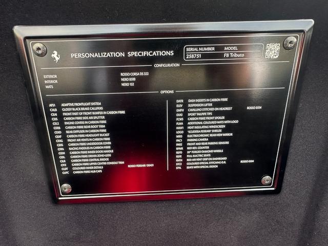 フェラーリ F8トリブートベースグレード D車 OP920 Fサスペンションリフター カーボン/リアディフューザー、フロントSダクト、サイドエアスプリッター、リアブーツトリム、センターCP ダイアモンド鍛造ホイール カーボンLEDステアリング
