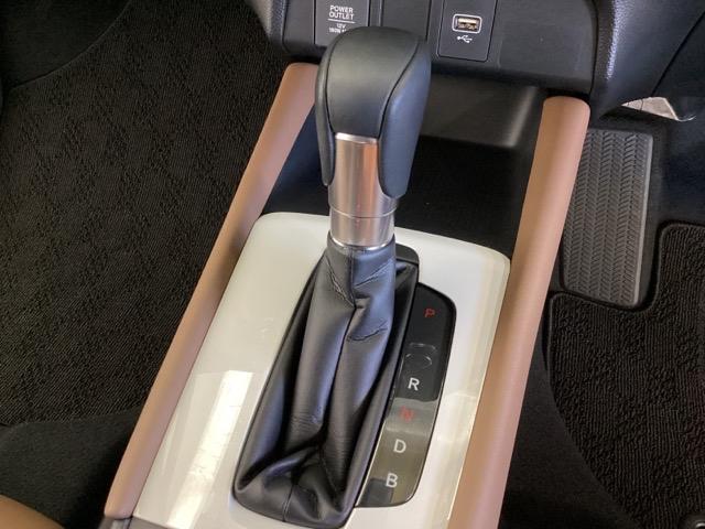 CVT車のセレクトレバーです。低速から高速まで、変速ショックのないスムーズな走りを実現するとともに、エンジン効率のよい領域を維持することで燃費にも貢献します。