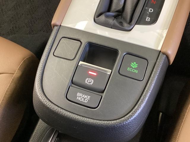 セレクトレバーの下に電子制御パーキングブレーキがあります。スイッチひとつで、停車した地点の傾斜などをシステムが検知・判断してブレーキ力を自動的に最適制御し、しっかり停車できるパーキングシステムです。