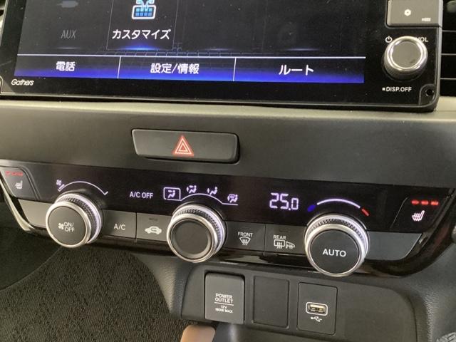 セレクトレバーの左側にオートエアコンがついてますので簡単操作で快適に過ごせます。シートヒータースイッチ内蔵で前席の左右別々に3段階で温度設定ができます。