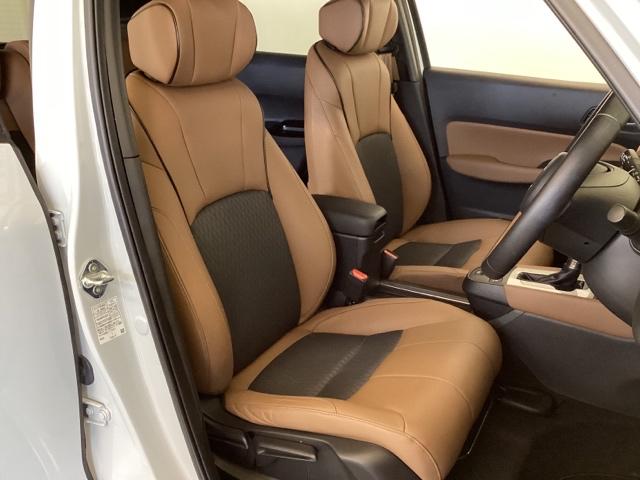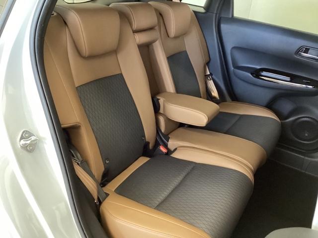 座席は本革シートになっています。ヘッドレスト・フロントシートの座面・背もたれの一部に本革を使用。それ以外の部位、およびリアシートには合成皮革やファブリックを使用しています。