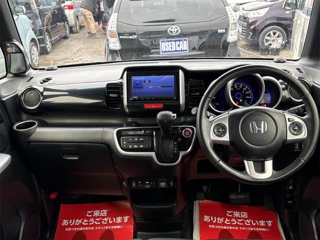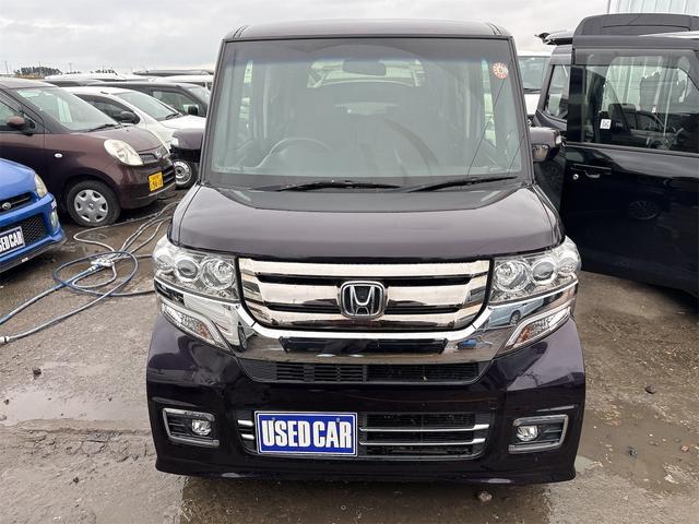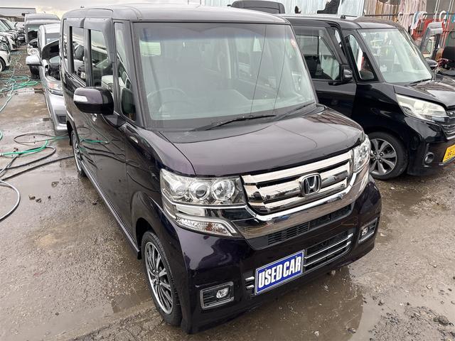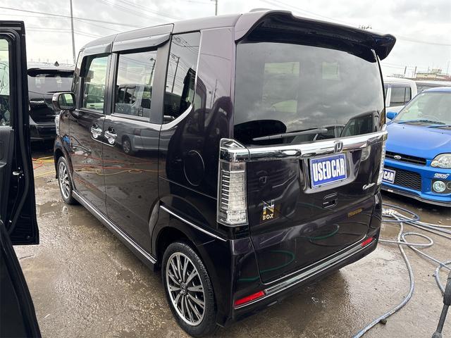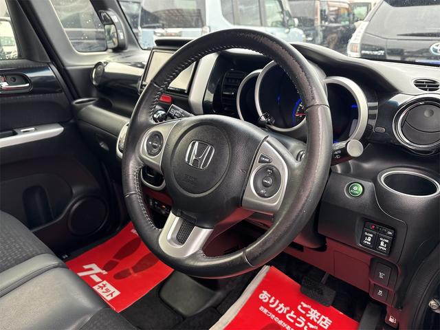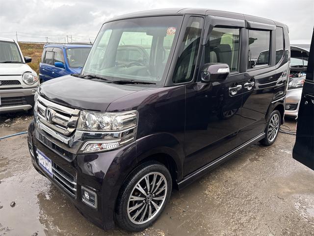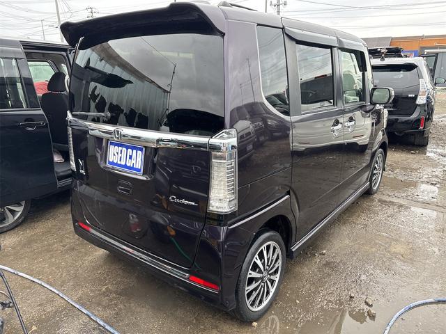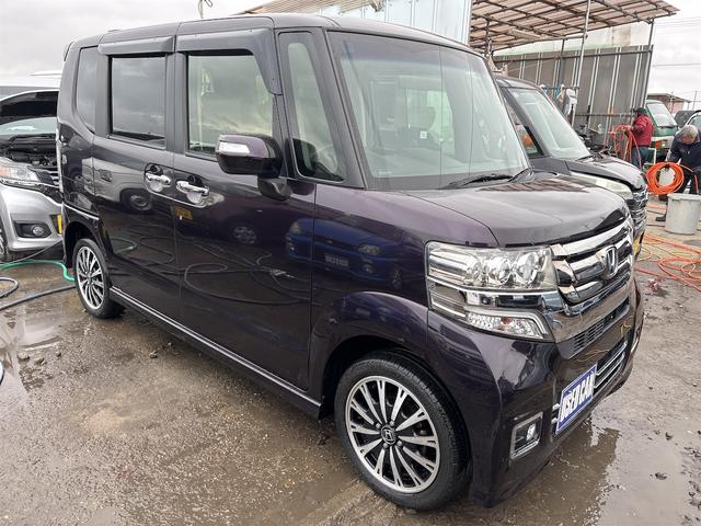 ホンダ N-BOXカスタムG・ターボLパッケージ 《4WDターボ》《後期モデル》純正15インチAW/両側パワースライドア/プッシュスタート/スマートキー/革巻きステアリング/プッシュスタート/シートヒーター/HIDオートライトフォグ/ハーフレザーシー
