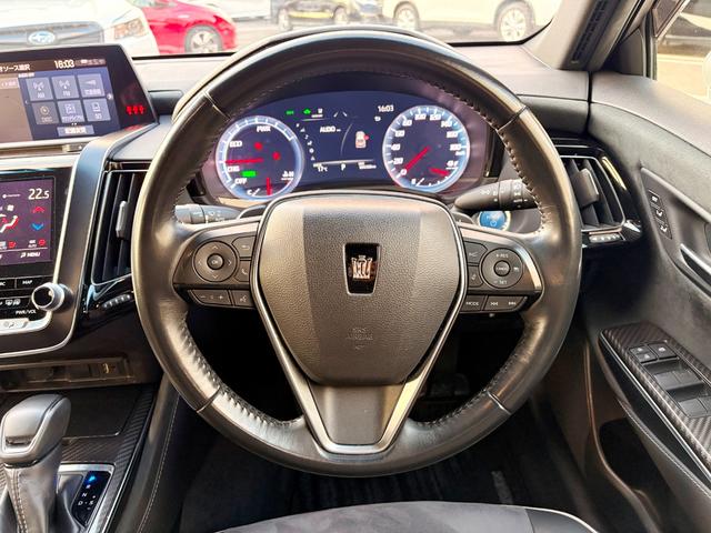 トヨタ クラウンハイブリッドRSアドバンス 純正フルセグナビ ハーフレザー シートヒーター パドルシフト バックカメラ フォグランプ ACC 衝突軽減B レーンキープ 全方位モニター ブランドスポットモニター ドラレコ ETC 純正18AW