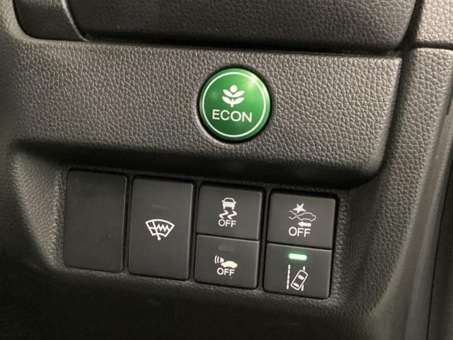 Hondaセンシング用の、VSA(ABS+TCS+横滑り抑制)解除とレーンキープアシストシステムのメインスイッチなどはハンドルの右側に装備しています。燃費に役立つECONボタンもここです。