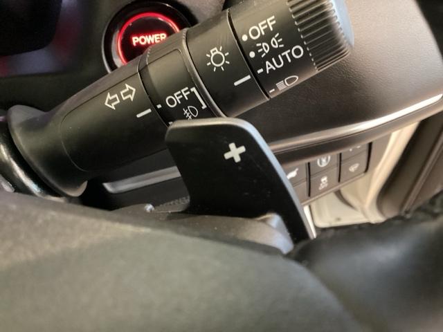 ステアリングホイール・後ろの減速セレクターは、左右に取り付けられた2つのパドルスイッチで減速の強さを調整。左側の「-」を操作すると減速を強く、右側の「+」を操作すると減速を弱くすることができます。