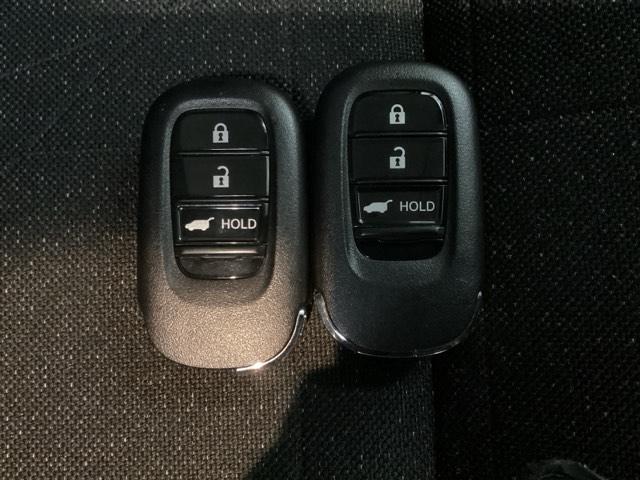 スマートキーを装備しています。鍵を差し込むことなくドアロックの開け閉めと、スタートボタン操作でのエンジンスタートができます。ボタン操作でトランクが開けられる電動テールゲートのボタンもついています。