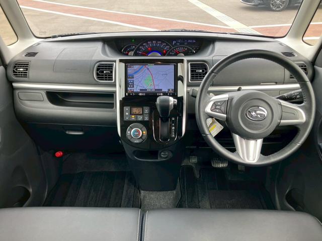 ダイハツ タントカスタムRS トップエディションSAII 8インチナビ フルセグ バックカメラ Bluetooth クリアランスソナー 衝突軽減ブレーキ ステアリングリモコン ハーフレザーシート アイドリングストップ 両側電動パワースライドドア ETC