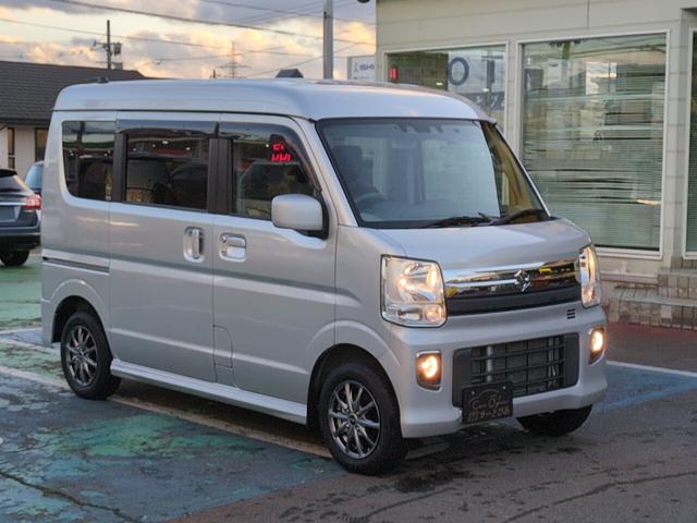 スズキ エブリイワゴンJPターボ 4WD シートヒーター パーキングソナー Bluetooth付社外ナビ バックカメラ オートライト フォグ ドライブレコーダー 社外ナビアルミホイール デュアルカメラブレーキ 車線逸脱防止 リアファン