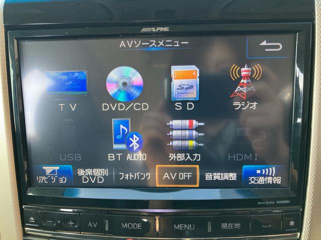 トヨタ ヴェルファイア2.4Z ゴールデンアイズ 4WD パワーバックドア 電動スライドドア アルパインビックナビ アルパインリヤモニター Bluetoothオーディオ ウォークスルー 新品バッテリー新品冬ワイパー付 オットマン クルーズコントロール