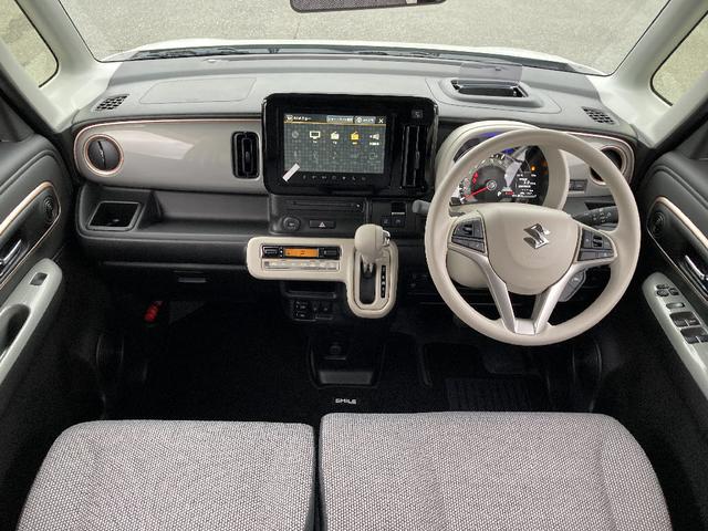 スズキ ワゴンRスマイルハイブリッドX 全方位M付ナビ 4WD ソフトベージュメタリックグレージュ2トーン 純正メモリーナビ フルセグ DVD B-T 両側パワースライドドア レーダークルーズ シートヒーター ハイブリット スマートキー