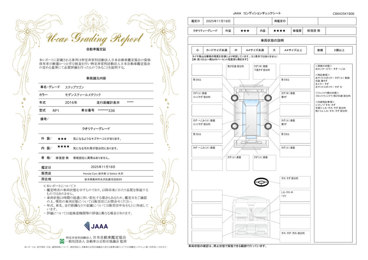 | 走行距離 | 8.4万km | 修復歴 | なし |
