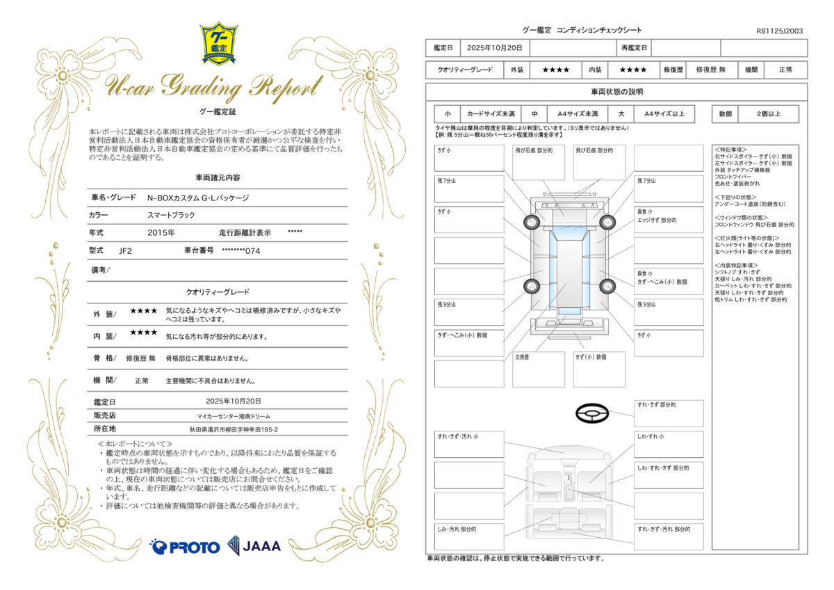 | 記録簿 | ○ | 輸入認定中古車 | ー |