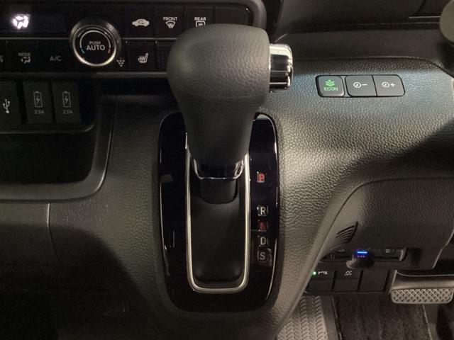CVT車のセレクトレバーです。低速から高速まで、変速ショックのないスムーズな走りを実現するとともに、エンジン効率のよい領域を維持することで燃費にも貢献します。