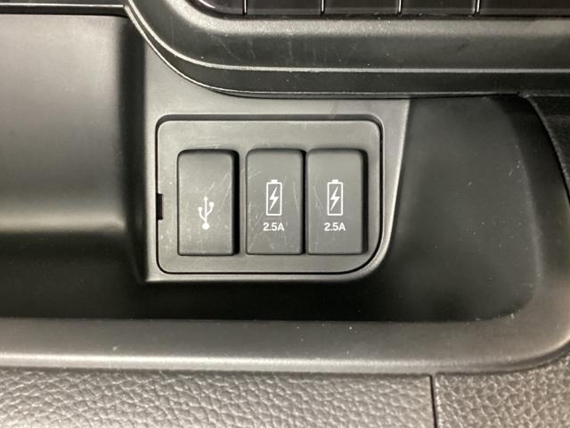エアコン操作パネルの下に、スマートフォンなどの充電可能なUSB端子が2個、音源などの外部入力の可能なUSB端子が1個ついています。移動中に充電もできるので便利です。