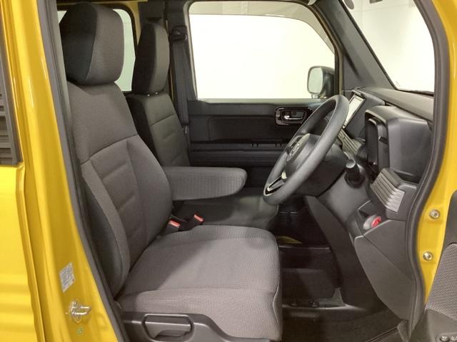 広い足元に肘掛けもついたゆったり座れるシートです。運転席と助手席の間が空いているため、助手席側への移動がスムーズです。交通量の多い道でも、助手席側から乗り降りができます。