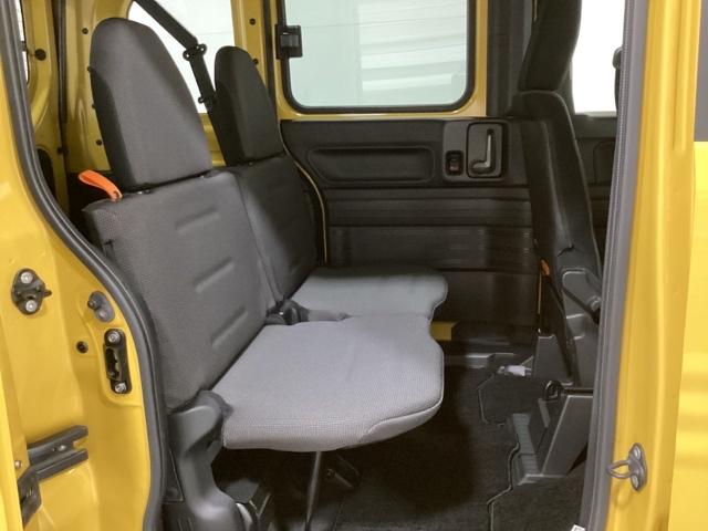 後席はワークスタイルに合わせて作業空間をアレンジします。左右分割で収納でき、段差のないフラットな荷室スペースを作り出すシートです。