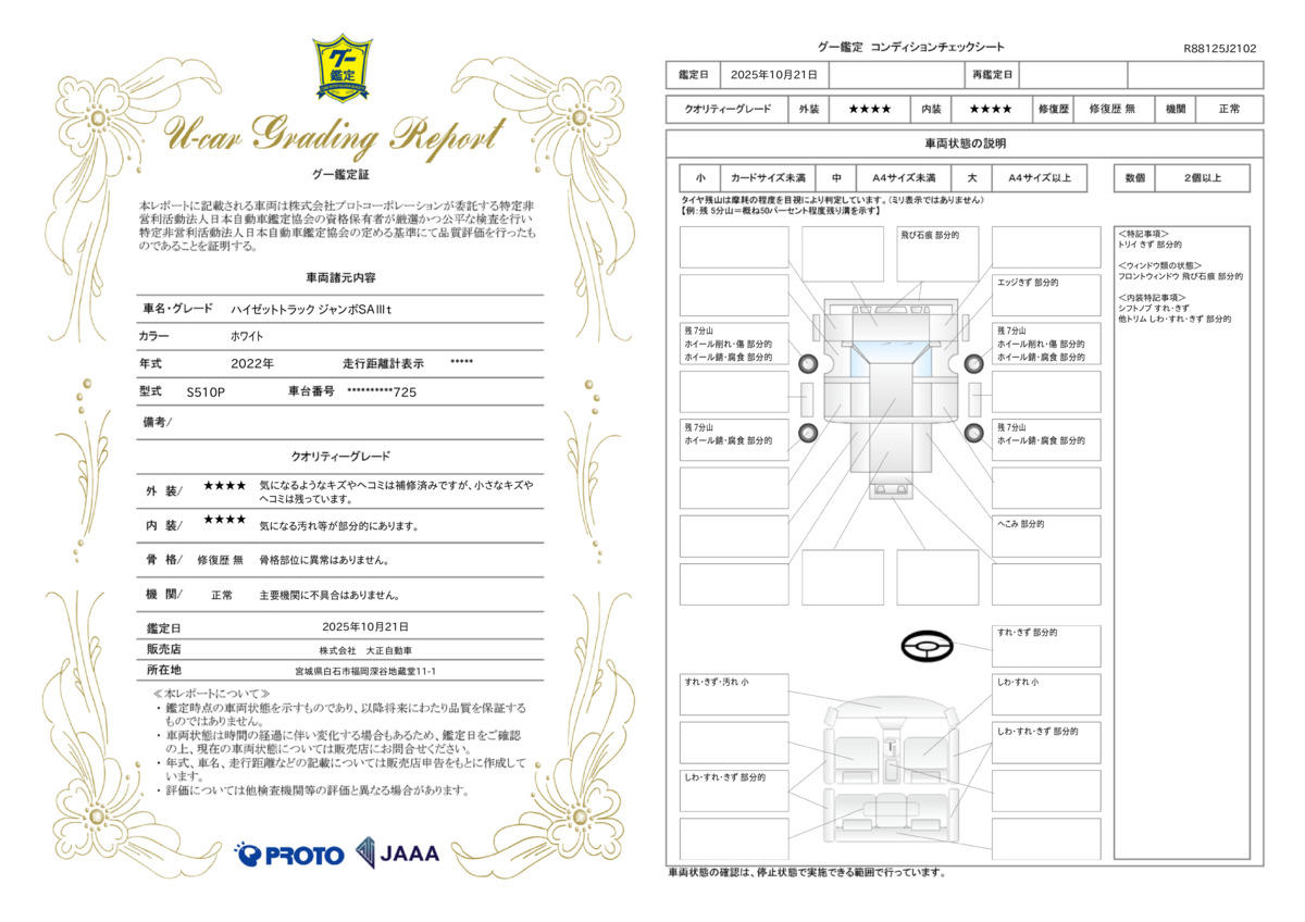 車台番号下3桁 | 725 | 全体のサイズ | - / - / - |