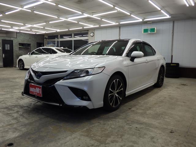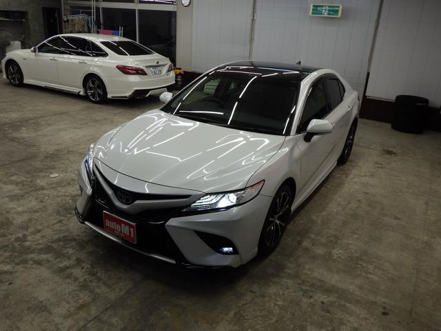 トヨタ カムリWSレザーパッケージ TSS パノラマルーフ 純正ディスプレイTconnectナビ JBLプレミアムサウンド バックカメラ ビルトインETC2.0 前後ドラレコ 純正マットバイザー トランクスポイラー ワンオーナー 禁煙車