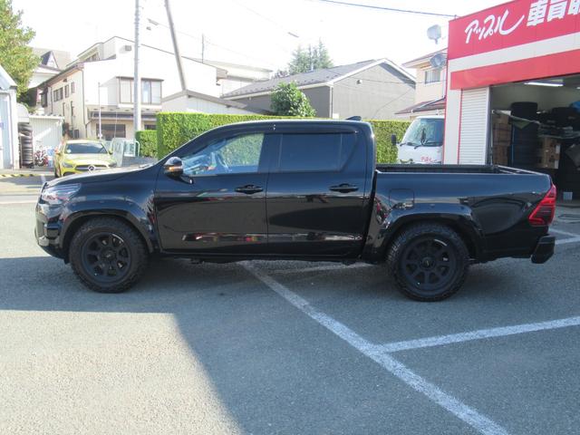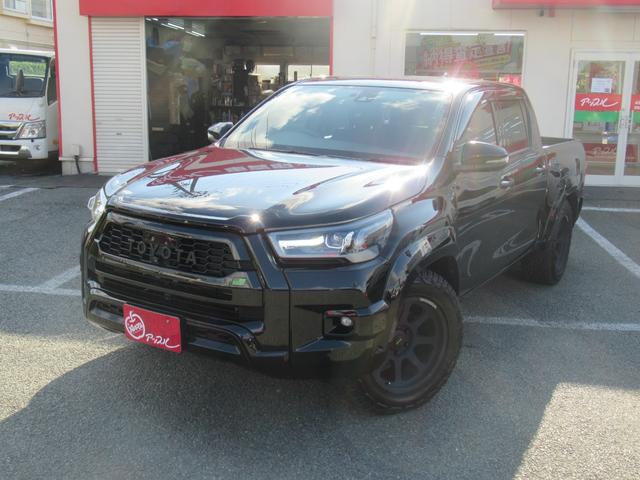 トヨタ ハイラックスZ GRスポーツ GUN125改 10センチローダウン公認 テイン車高調 ガナドールマフラー ジャオスオーバーフェンダー レイズ18インチホイール ヒッチメンバー ノーマルパーツあり 社外エンジンスターター ETC