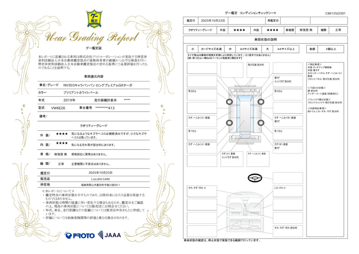 | 走行距離 | 15.7万km | 修復歴 | なし |